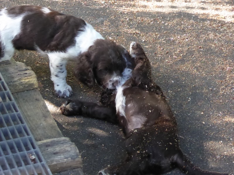 Da die Kleinen auf allem herumbeissen, muss der Mini-Pool jedesmal wieder weggeräumt werden, sonst hätte er schon zu viele Löcher. Sobald er neu aufgebaut wird, ist alles wahnsinnig interessant und wird gründlich untersucht.